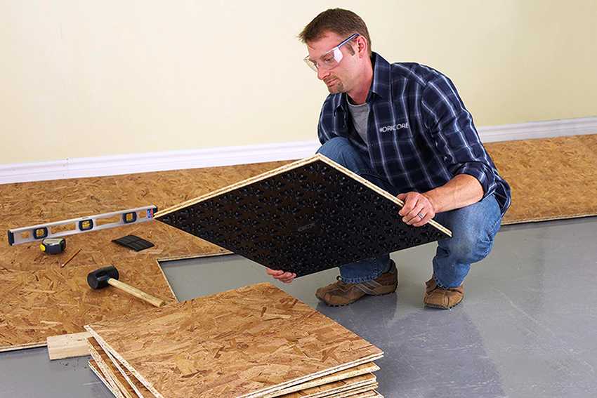 Найголовніше – це виконати важлива умова. Підкладку варто класти не під поверхню лінолеуму, а під ОСБ. ОСБ можна замінити на фанеру або ДСП, але не бажано. Пінополіетилен може красти ряд дрібних нерівностей, які завжди залишаються після заливки.