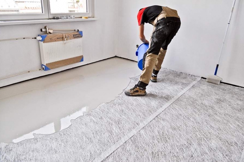 Через пару діб, коли суміш подстіла, волога поступово випарувалася, на стяжку уклав неполіетіленовую підкладку товщиною в 3 мм. На неї помістили плити ОСБ з товщиною в 1,5 см і прошурупілі з кроком в 30 см. Аналогічні роботи були виконані в коридорі біля півроку назад.