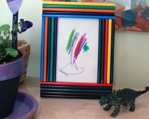 Що зробити незвичайного з олівців? Відмінний варіант – вантажні вази або незвичайні рамки. Вам знадобиться кілька упаковок олівців, базова рамка або дерев'яна або пластикова ваза. Основу під виріб можна вирізати з цупкого картону. Процес створення шедевра піде дуже просто.